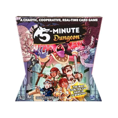 5-ÂMinute Dungeon is a chaotic, co-Âoperative, real-Âtime card game in which players have only five minutes to escape the randomized dungeon. Communication and teamwork are critical to survival because there’s no time to form a carefully considered plan — and no predicting what dangers lie ahead.